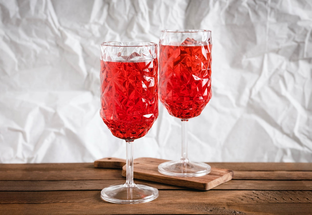 Shatterproof, thick & super durable reusable glass, made from food grade plastic. Tested over 1000 dishwasher cycles with no visual detraction.