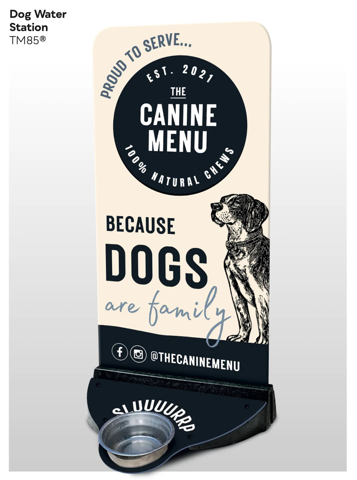 Catch the attention of your visiting customers and let them know about your dog menu with this branded Pavement Stand and water station.